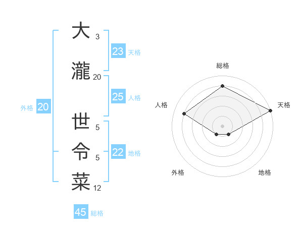 大瀧 世令菜さんを姓名の画数から五運を鑑定