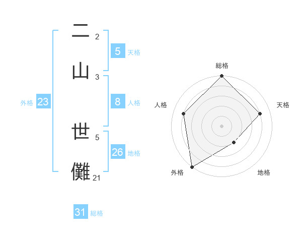 二山 世儺さんの外格は23画の5点!