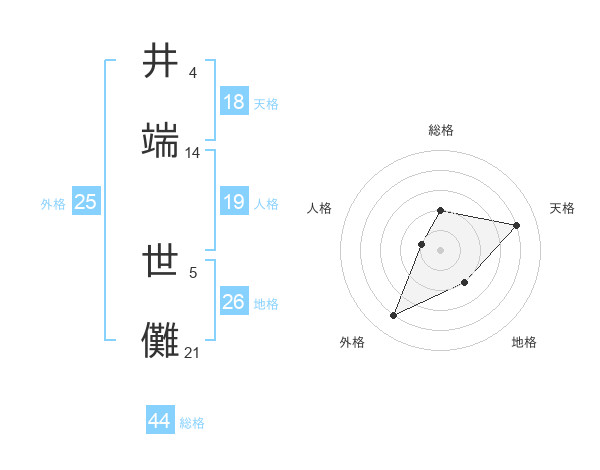 井端 世儺さんを姓名の画数から五運を鑑定