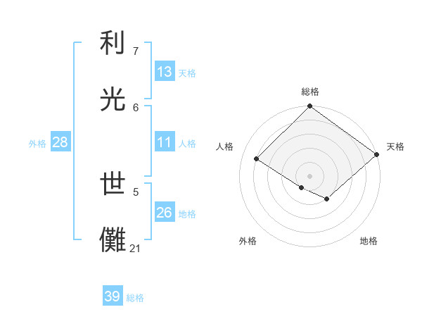 利光 世儺さんの天格は13画の5点!