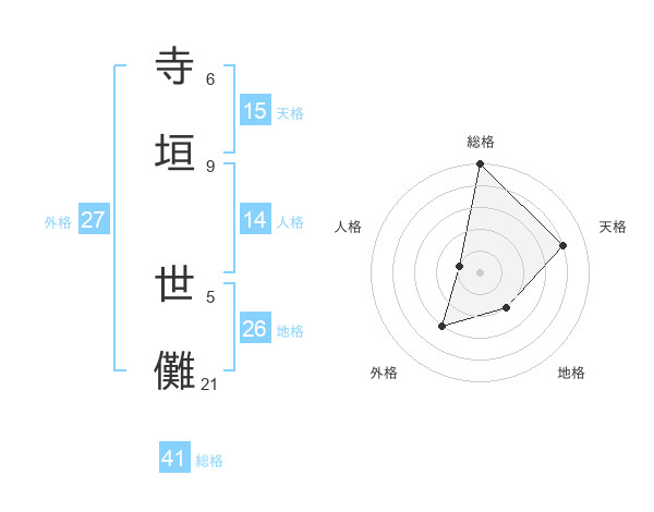 寺垣 世儺さんの総格は41画の5点!