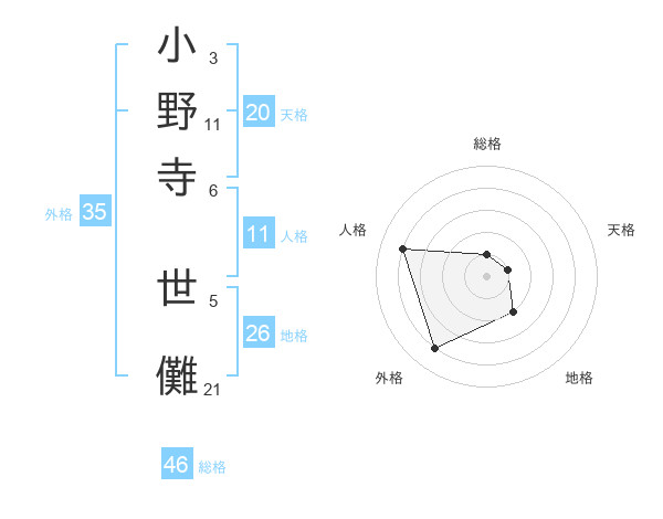 小野寺 世儺さんの天格は20画の1点!