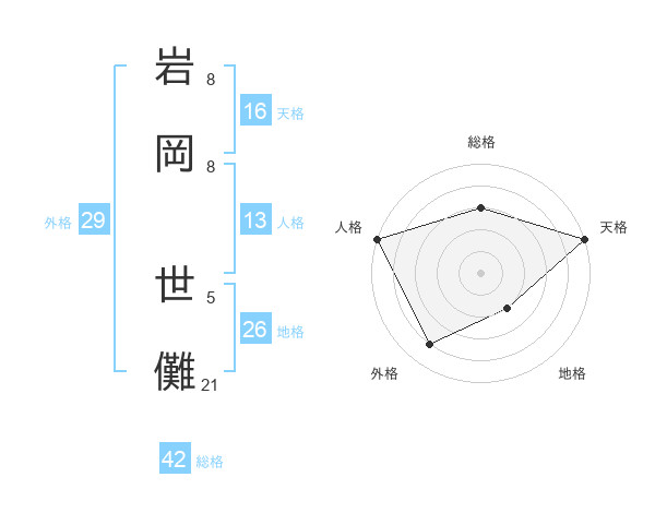 岩岡 世儺さんを姓名の画数から五運を鑑定