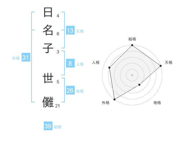 日名子 世儺さんを姓名の画数から五運を鑑定