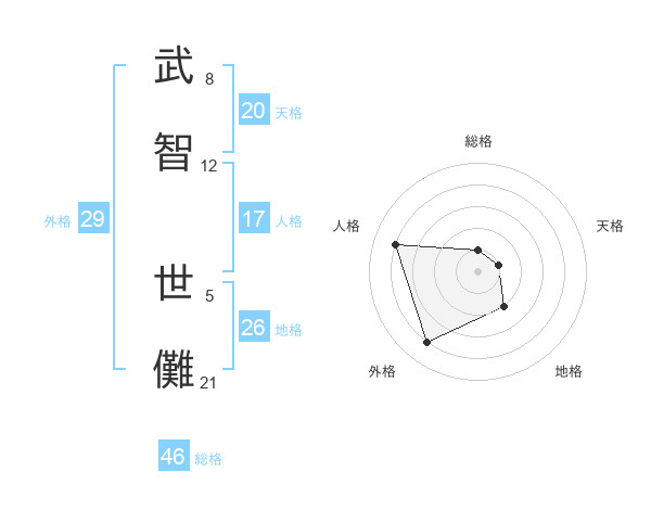 武智 世儺さんを姓名の画数から五運を鑑定