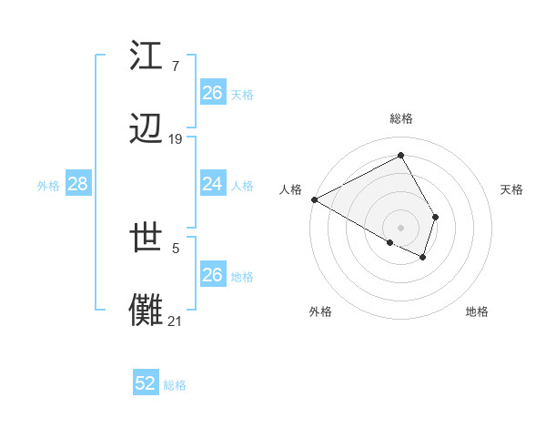 江辺 世儺さんを姓名の画数から五運を鑑定