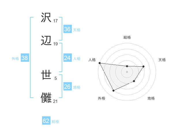 沢辺 世儺さんの外格は38画の4点!