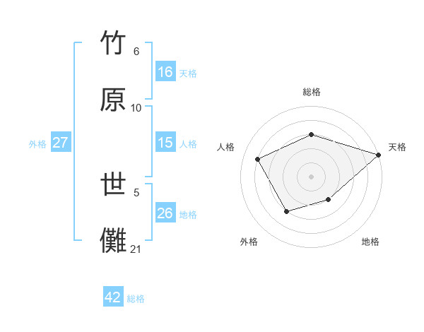 竹原 世儺さんを姓名の画数から五運を鑑定