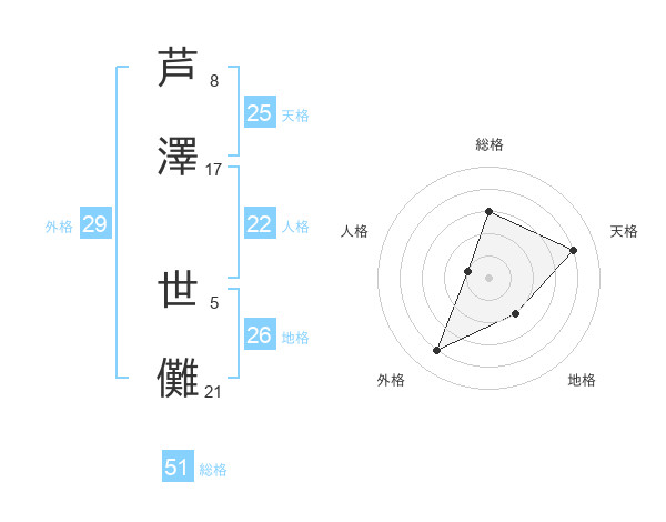 芦澤 世儺さんを姓名の画数から五運を鑑定
