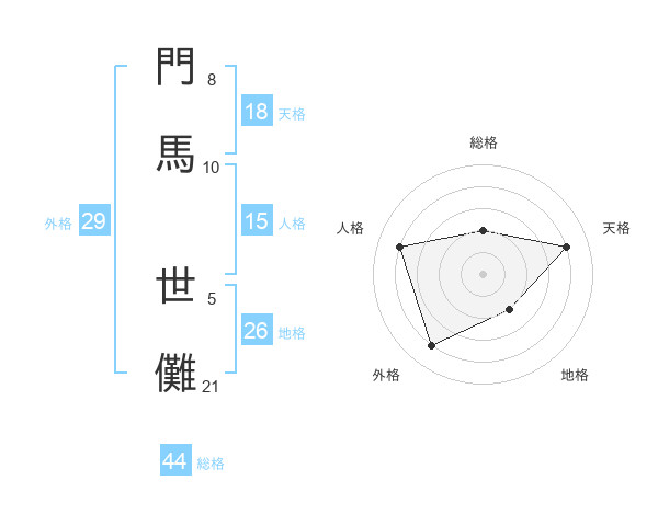 門馬 世儺さんを姓名の画数から五運を鑑定