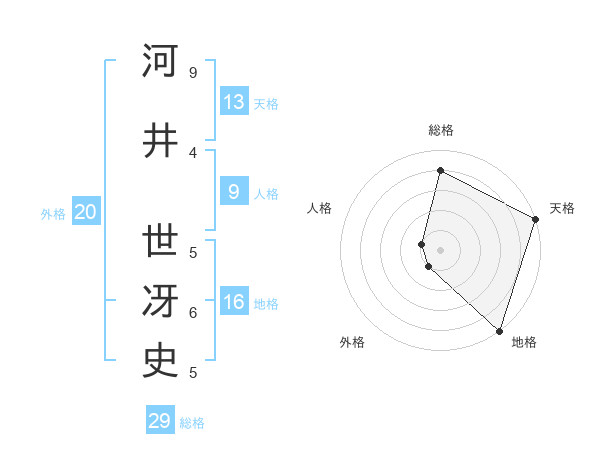 河井 世冴史さんを姓名の画数から五運を鑑定