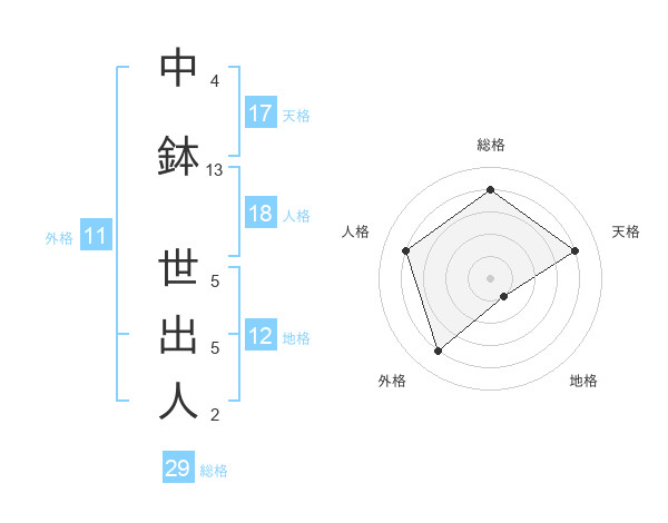 中鉢 世出人さんの総格は29画の4点!