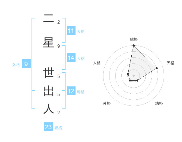 二星 世出人さんの総格は23画の5点!