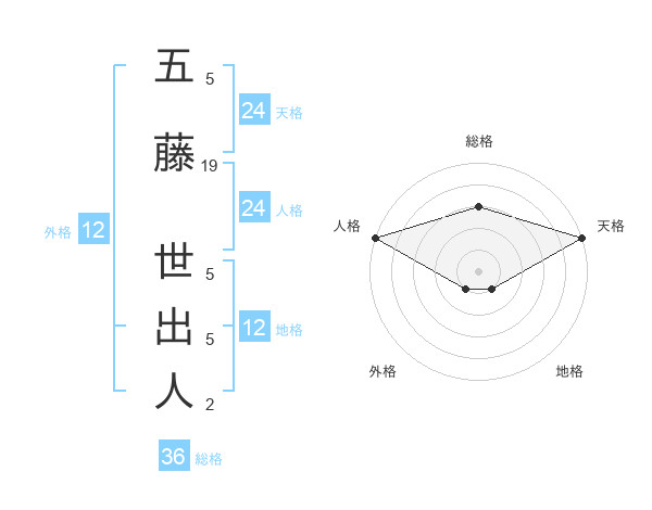 五藤 世出人さんを姓名の画数から五運を鑑定