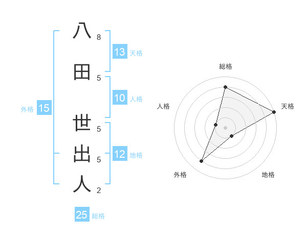 八田 世出人さんの天格は13画の5点!