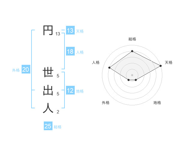 円 世出人さんの天格は13画の5点!
