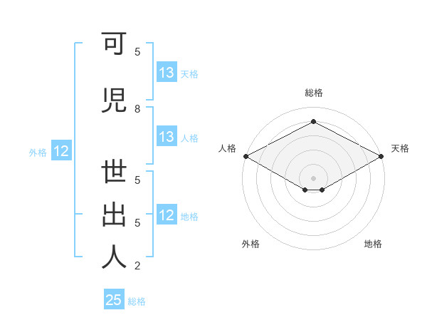 可児 世出人さんの天格は13画の5点!