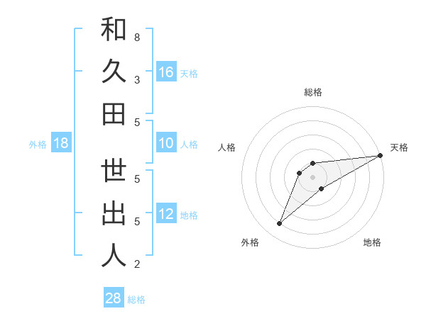 和久田 世出人さんを姓名の画数から五運を鑑定