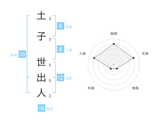 土子 世出人さんの総格は18画の4点!