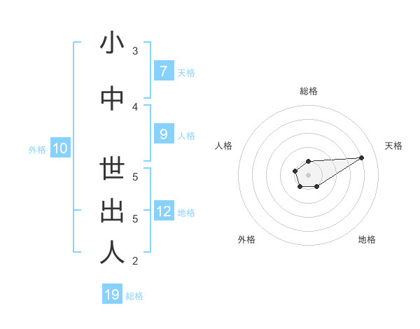 小中 世出人さんの総格は19画の1点!