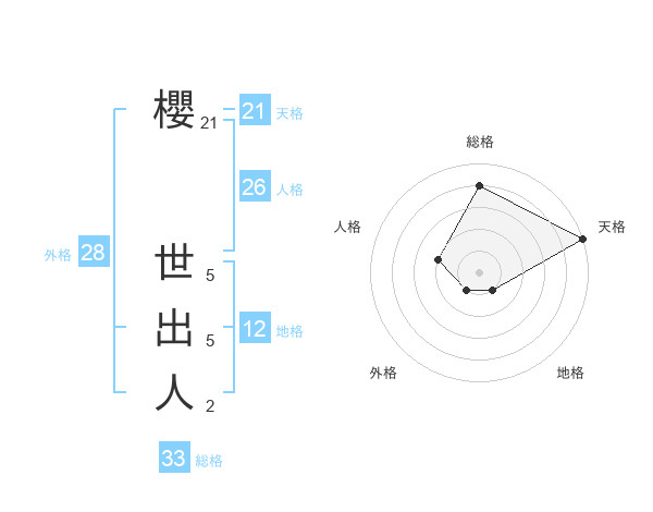 櫻 世出人さんの天格は21画の5点!