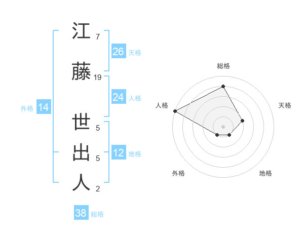 江藤 世出人さんの総格は38画の4点!