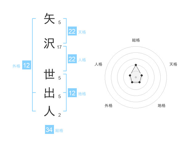 矢沢 世出人さんの天格は22画の1点!