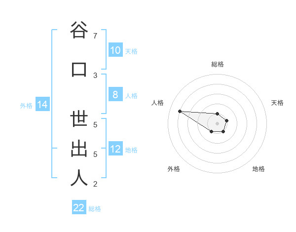 谷口 世出人さんの総格は22画の1点!