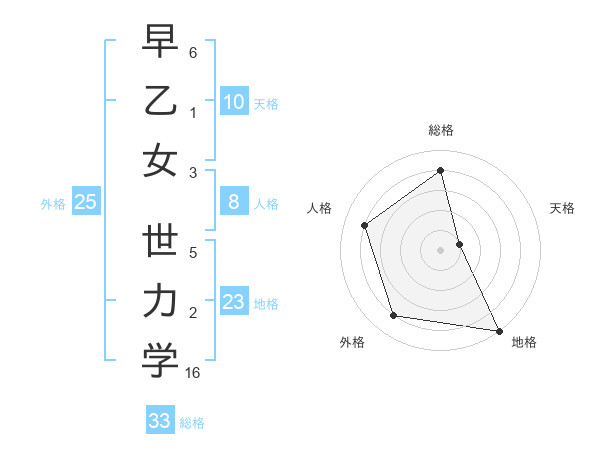早乙女 世力学さんの総格は33画の4点!