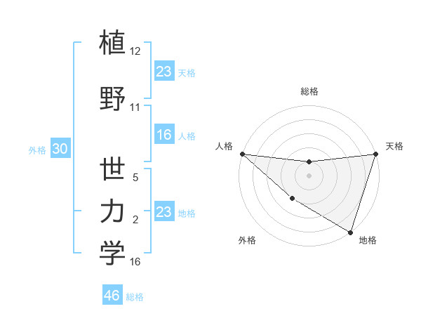 植野 世力学さんの天格は23画の5点