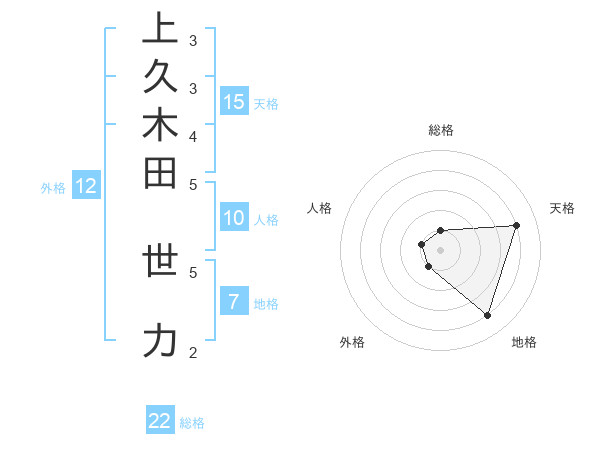 上久木田 世力さんを姓名の画数から五運を鑑定