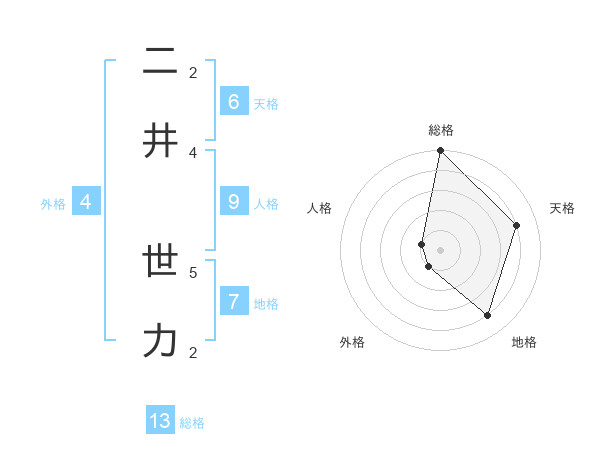 二井 世力さんの総格は13画の5点!
