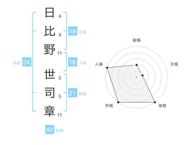 日比野 世司章さんを姓名の画数から五運を鑑定