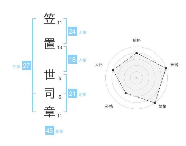 笠置 世司章さんを姓名の画数から五運を鑑定