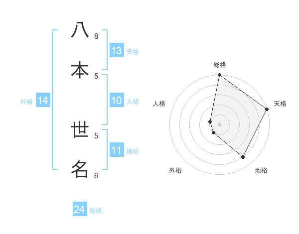 八本 世名さんの天格は13画の5点!