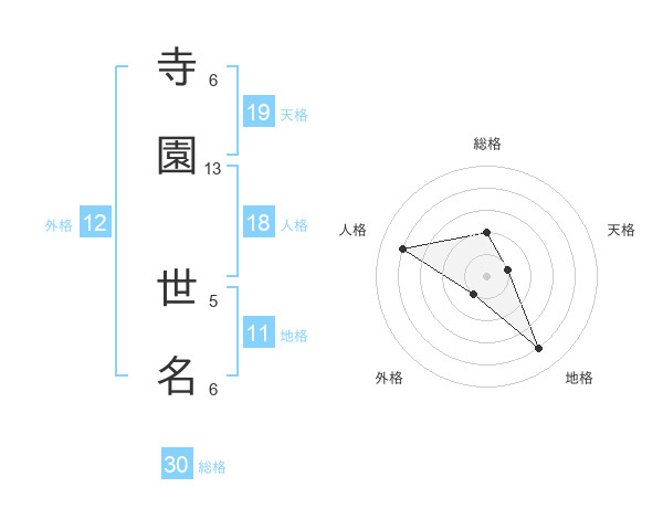 寺園 世名さんの総格は30画の2点!