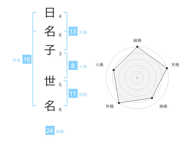 日名子 世名さんの外格は16画の5点!