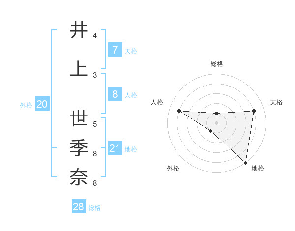 井上 世季奈さんを姓名の画数から五運を鑑定