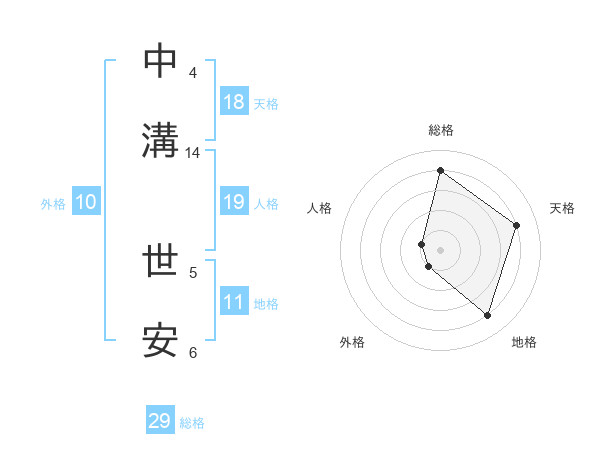 中溝 世安さんの総格は29画の4点!