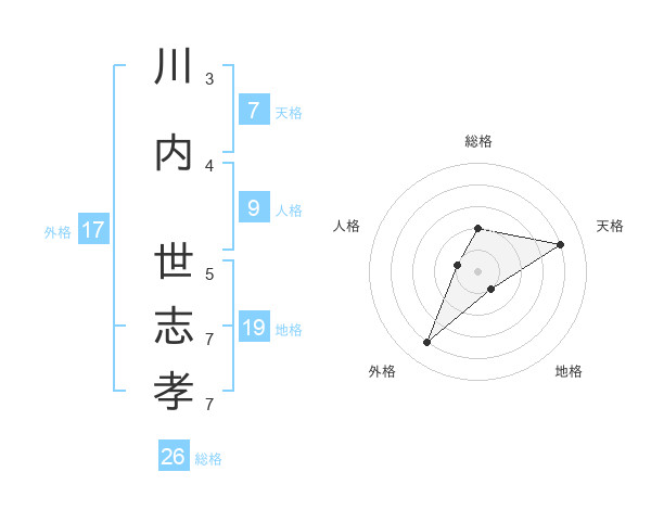 川内 世志孝さんを姓名の画数から五運を鑑定
