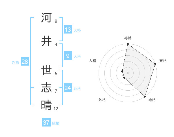 河井 世志晴さんを姓名の画数から五運を鑑定