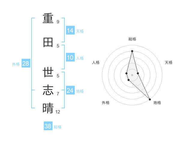 重田 世志晴さんを姓名の画数から五運を鑑定