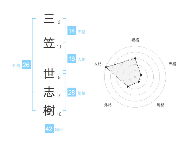 三笠 世志樹さんの総格は42画の3点