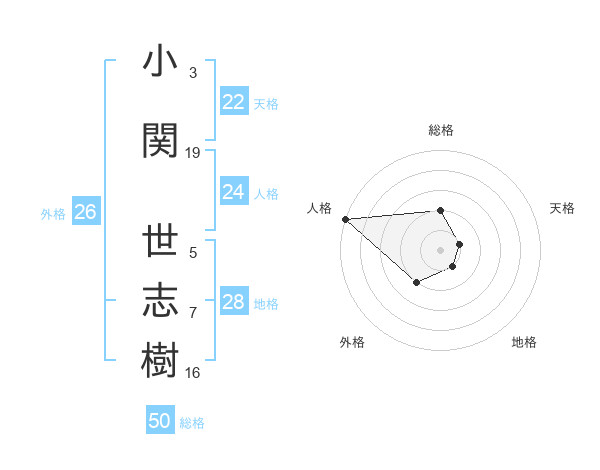 小関 世志樹さんの総格は50画の2点!