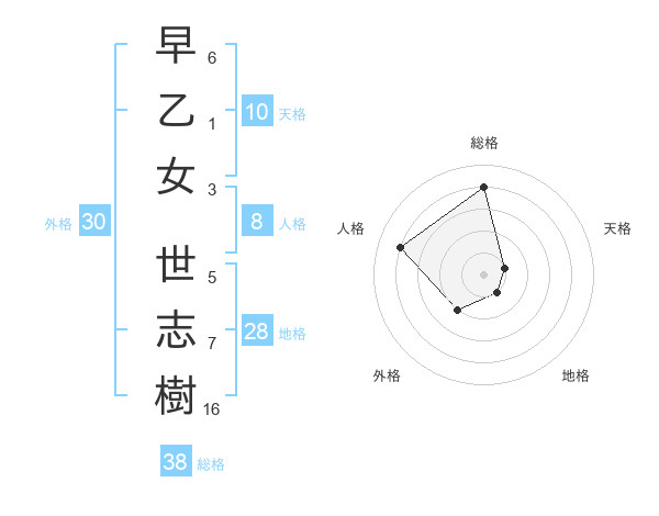 早乙女 世志樹さんを姓名の画数から五運を鑑定