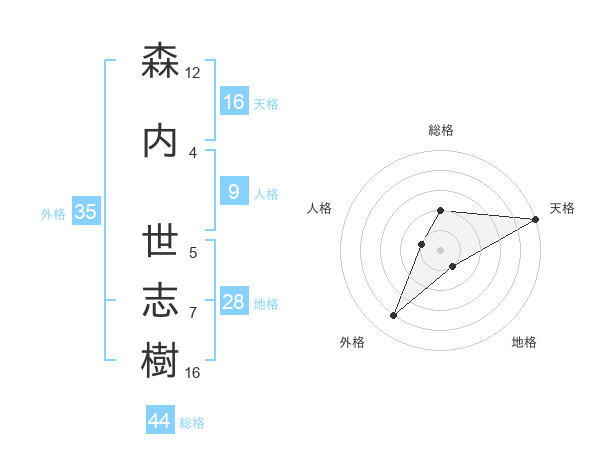 森内 世志樹さんの天格は16画の5点!