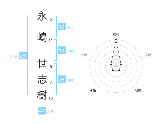 永嶋 世志樹さんを姓名の画数から五運を鑑定
