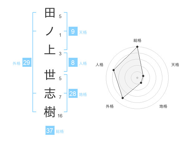 田ノ上 世志樹さんの総格は37画の5点!