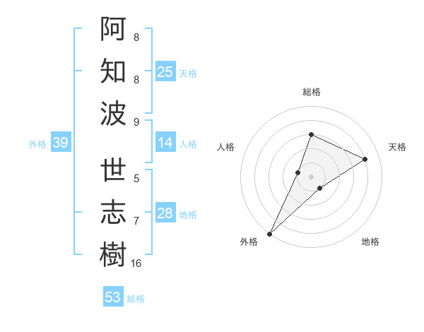 阿知波 世志樹さんの外格は39画の5点!