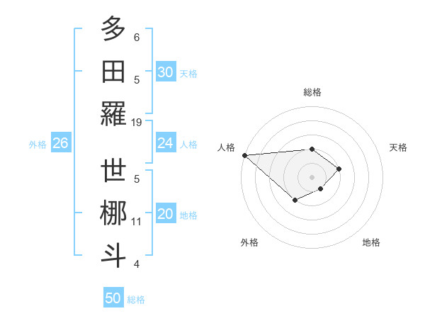 多田羅 世梛斗さんを姓名の画数から五運を鑑定